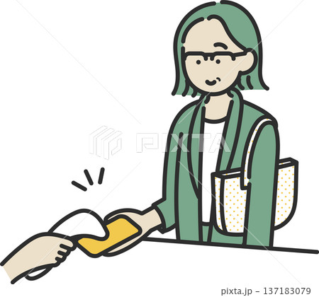圖說:一位40多歲的女性正在使用智慧型手機進行非現金支付。