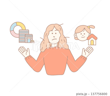 母親平衡工作和育兒的插圖