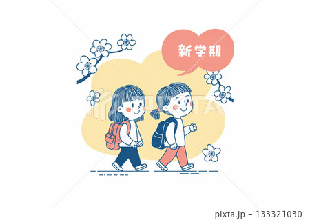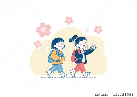 新學期學生步行上學的場景插圖