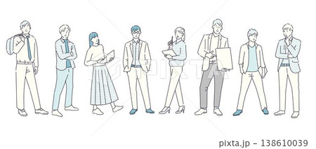 一群男女以各種姿勢站立-商務人士-商務團隊向量插畫素材