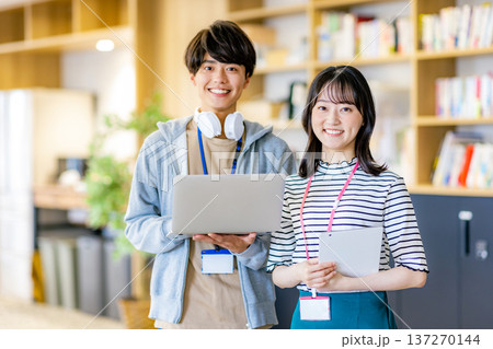 在辦公室工作的年輕男女肖像
