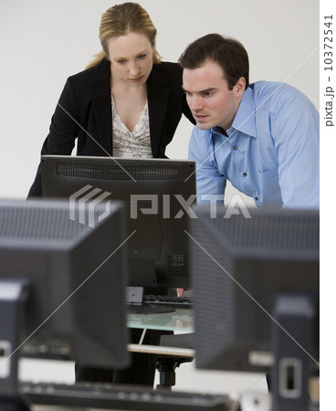 Businesspeople looking at computer