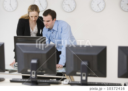 觀看個人計算機的商人和女商人