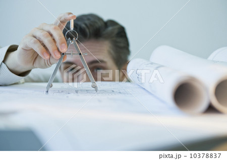 Architect using drawing compass