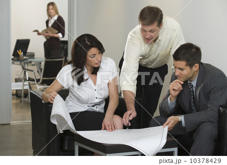 Business people examining blueprints