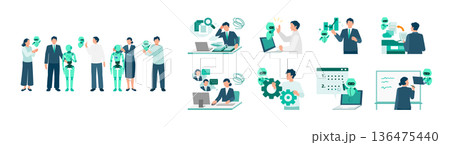 商人集展示和解釋 AI 設備插圖素材