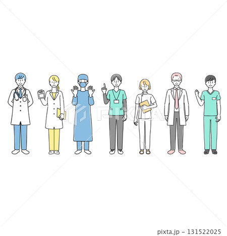 穿著手術服的護士和醫生、穿著 V 領襯衫的男女(透明背景)、線條畫