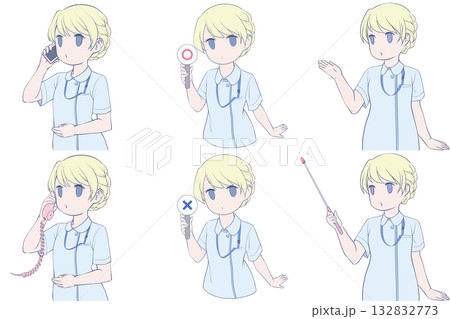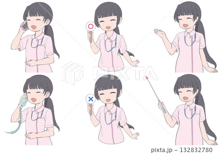 向量圖的五種姿勢的女護士