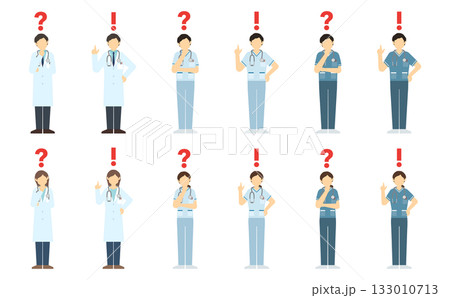 一組醫務工作者的各種姿勢和臉部表情