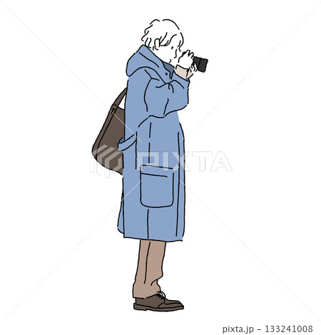一位手持相機的男士的單色線條畫(秋冬時尚)