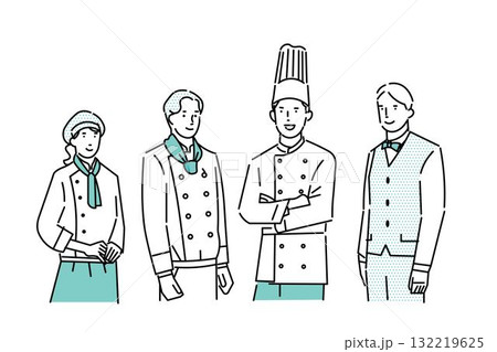 餐廳廚師、主廚、糕點師、服務生製服-服裝-團隊插畫素材