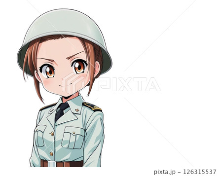 白色背景下身穿軍裝、頭戴頭盔的女兵插圖