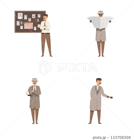 男偵探全身圖 1 套 9 種不同的面部表情和手勢