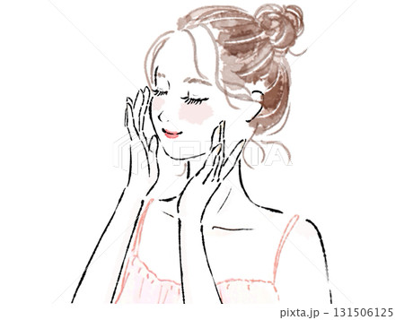 一位女士用護膚品觸摸臉頰並閉上眼睛