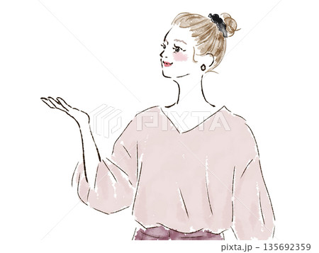 一位微笑的女性上半身插圖 - 水彩美人插圖