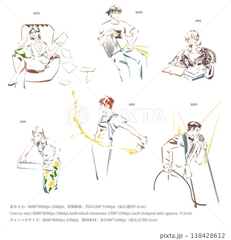 MBTI性格診断 職業キャラクター イラストセット(ENTJ, ENFP, INFJ, ISTP,