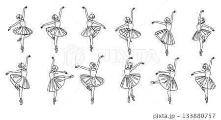 Line Art Collection of Ballerinas in Various Poses Dancing Gracefully with Elegance