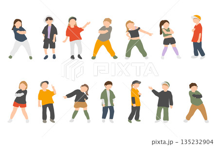 Abstract persons. Young characters group. Happy people smile and love. Energetic team of youth. Fun crowd community. Disco music party. Zoomers dancing. Nightclub entertainment. Vector illustration
