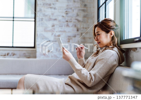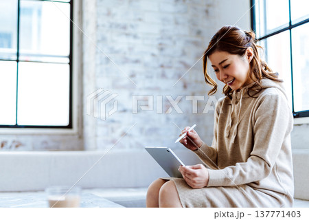 使用平板電腦工作的創意女性