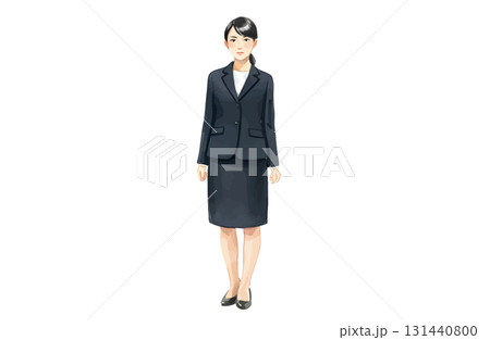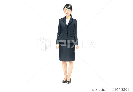 一位身著制服的女學生正在參觀。這是一張透明的、手工剪裁的全身 PNG 照片。