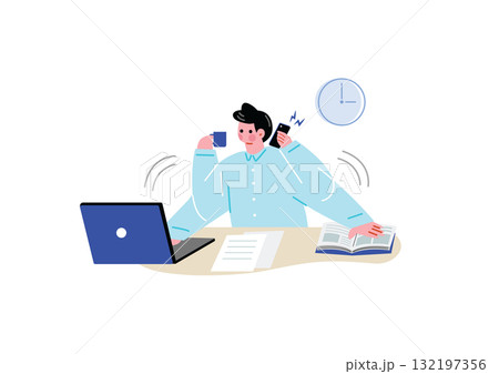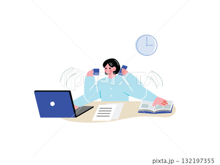圖庫插圖: 一位女性商務人士在辦公桌前打哈欠的向量圖