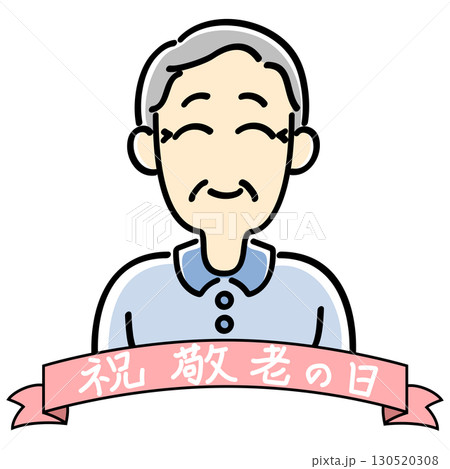 慶祝敬老日的祖父上半身正面照(有閃光)