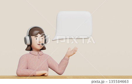 Customer Service Representative Character with Speech Bubble Mock up. 3D Rendering.
