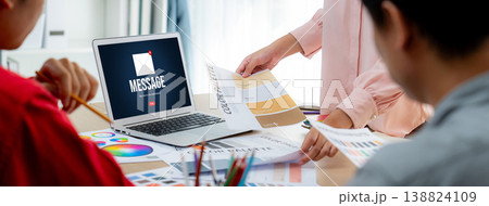 Business Team Collaboration with Email Icons and Data Charts on a Table in a Modern Office Environment Gluon