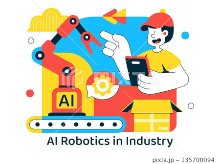AI Robotics In Industry Vector Illustration Featuring Smart Automation, Industrial Robots, Advanced Manufacturing Technology Background