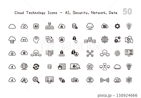 人工智慧/AI技術線條圖示集(單色,適用於商業用途)