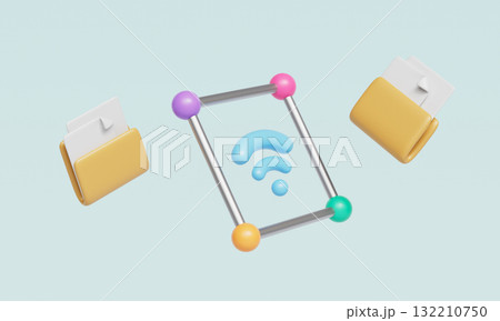 Wireless Data Transfer and Network Folder. 3D Rendering.