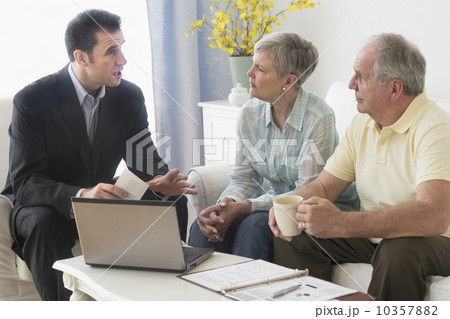 USA, New Jersey, Jersey City, Senior woman talking to financial advisor in home