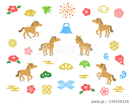 日式新年圖標和馬插圖集