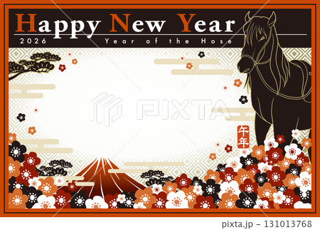 2026新年賀卡橫向設計馬與梅花插圖