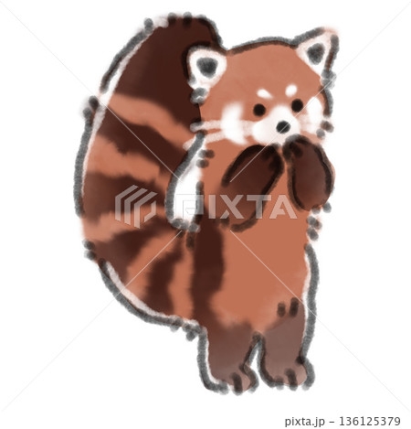 水彩插畫,一隻小紅熊貓用兩條腿站立。非常適合用於有關成長和運動的專欄文章。