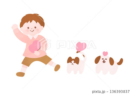 心地善良的男孩、貓和狗 | 動物福利插圖