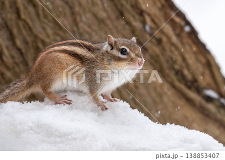 站在雪地裡的花栗鼠
