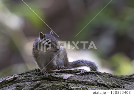 一隻北海道花栗鼠站在森林裡