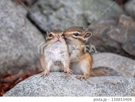 一隻北海道松鼠媽媽守護著她的幼崽。