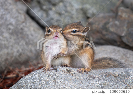 北海道花栗鼠舔手