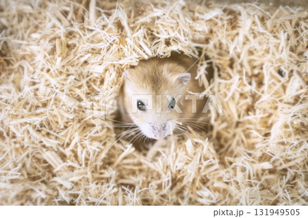 A Cute Hamster with sawdust.