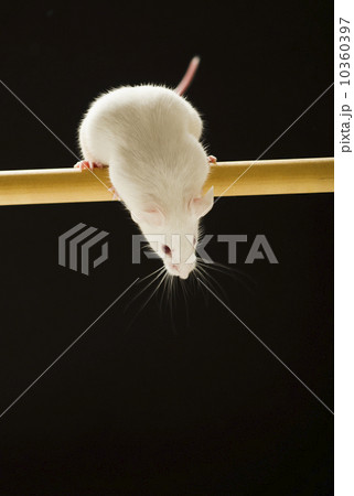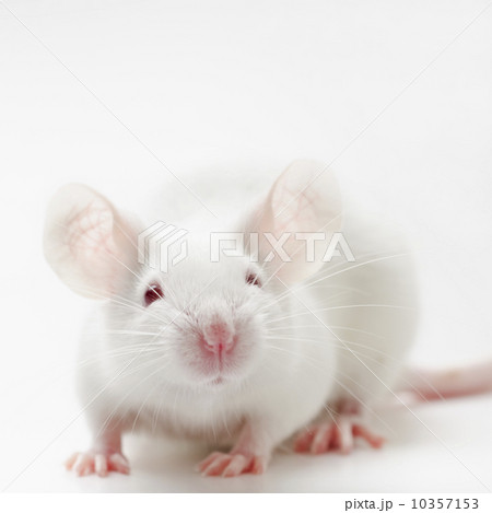 White mouse looking down, studio shot