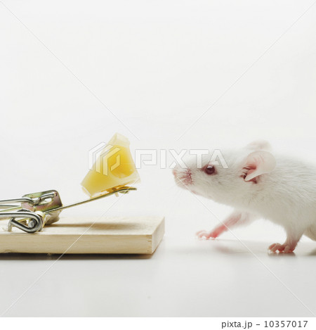 Write mouse near mousetrap, studio shot