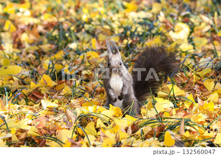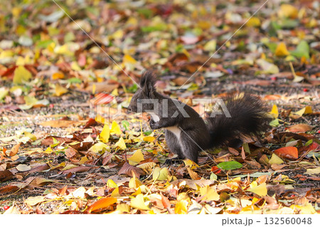 北海道松鼠在秋季森林裡忙碌地跑來跑去
