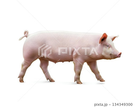 Cute Pig Standing on White Background with Clear Detail Representing Farm Animal and Natural Livestock Concept for Stock Photography