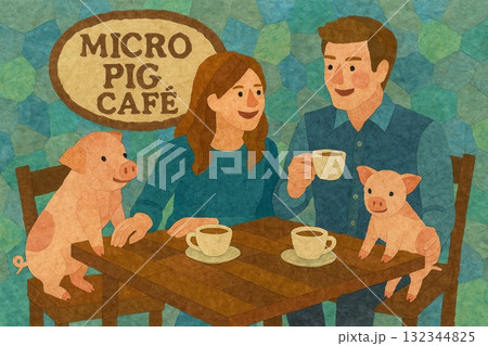 豬咖啡館 微型豬咖啡館 迷你豬咖啡館 拼貼風格