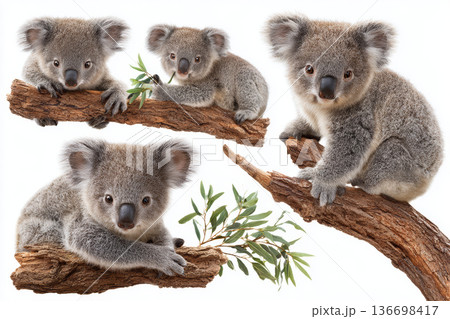 Cute koala baby koala koala bear wildlife eucalyptus tree branch animal fur nature marsupial portrait Australia forest leaf paw face ear eye nose