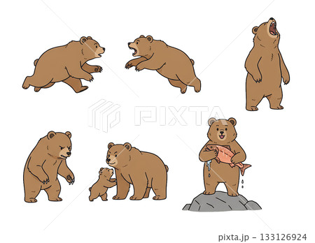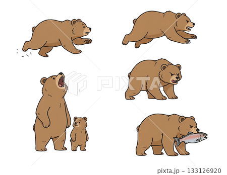 可愛的熊插畫集,棕熊各種姿勢,手繪風格,動物