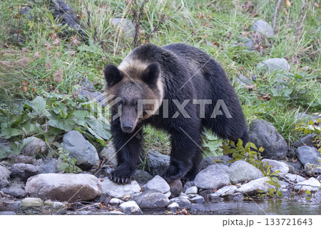 棕熊沿著河走
