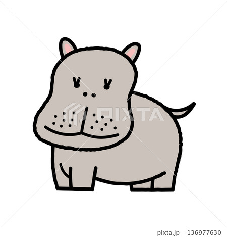 可愛的動物插畫素材,描繪了一個簡單的站立河馬形象